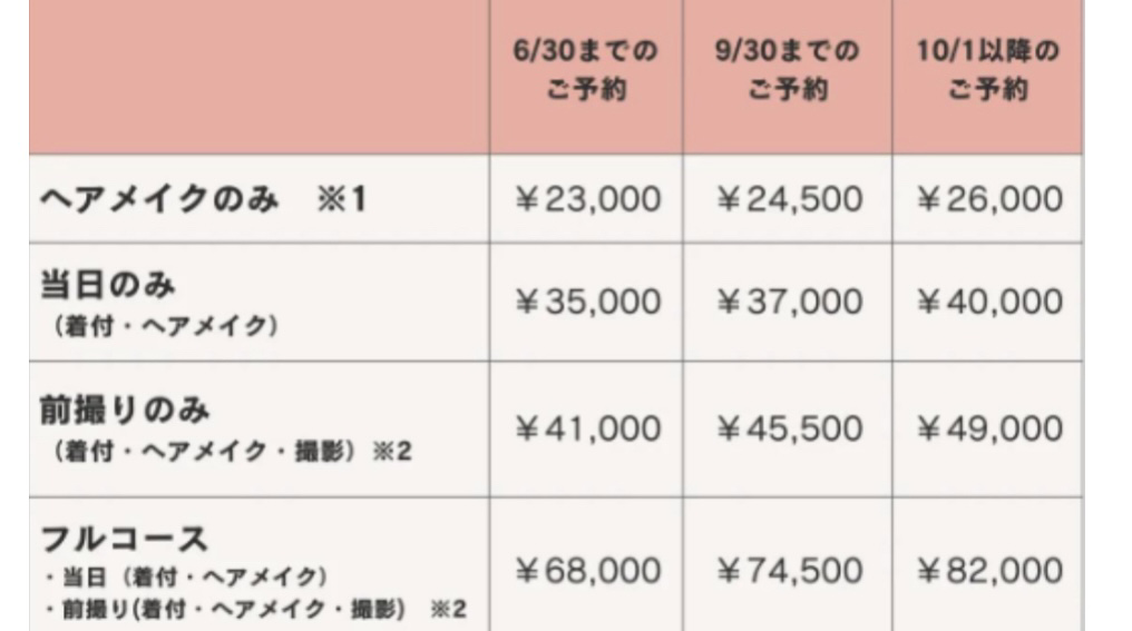 前撮り撮影(ヘア+メイク+着付込み)=¥41,000(税込)